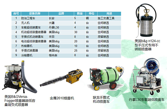具有行業(yè)先進的設備,美國B&GVersa-Fogger噴霧器超低容量背負式噴霧器30臺、電動超低容量噴霧器20臺、熱煙霧機10臺、手提式噴霧器25臺......